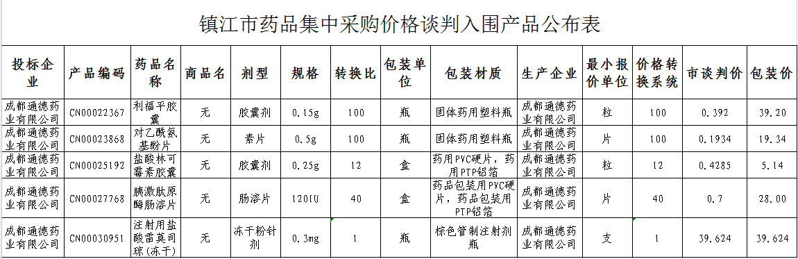 2018年3月9日,镇江市卫计委官方网站正式发布《关于镇江市药品集中采购价格谈判入围产品的通知》,我公司五个产品最终确定纳入采购名单。