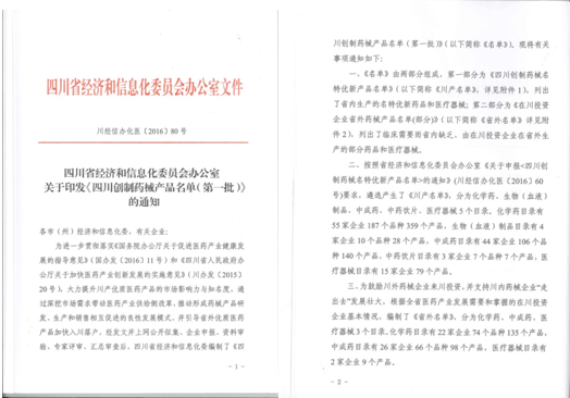 日前,四川省经济和信息化委员会发布了《四川创制药械产品名单(第一批)》结果,我公司产品胰激肽原酶肠溶片120u、胰激肽原酶肠溶片60u、贝诺酯胶囊0.25g、西咪替丁胶囊0.2g、阿奇霉素分散片0.25g、复方胃蛋白酶颗粒10g、注射用盐酸雷莫司琼0.3mg、注射用泮托拉唑40mg(以泮托拉唑计)、注射用三磷酸腺苷二钠20mg、注射用硫酸阿米卡星0.2g,共10个品规被纳入《四川创制药械产品名单(第一批)》。这是四川省经济和信息化委员会和广大客户对公司产品的高度认可,更是公司综合竞争实力和影响力全面提升的重要体现,对于提高客户满意度和产品美誉度具有良好的促进作用。